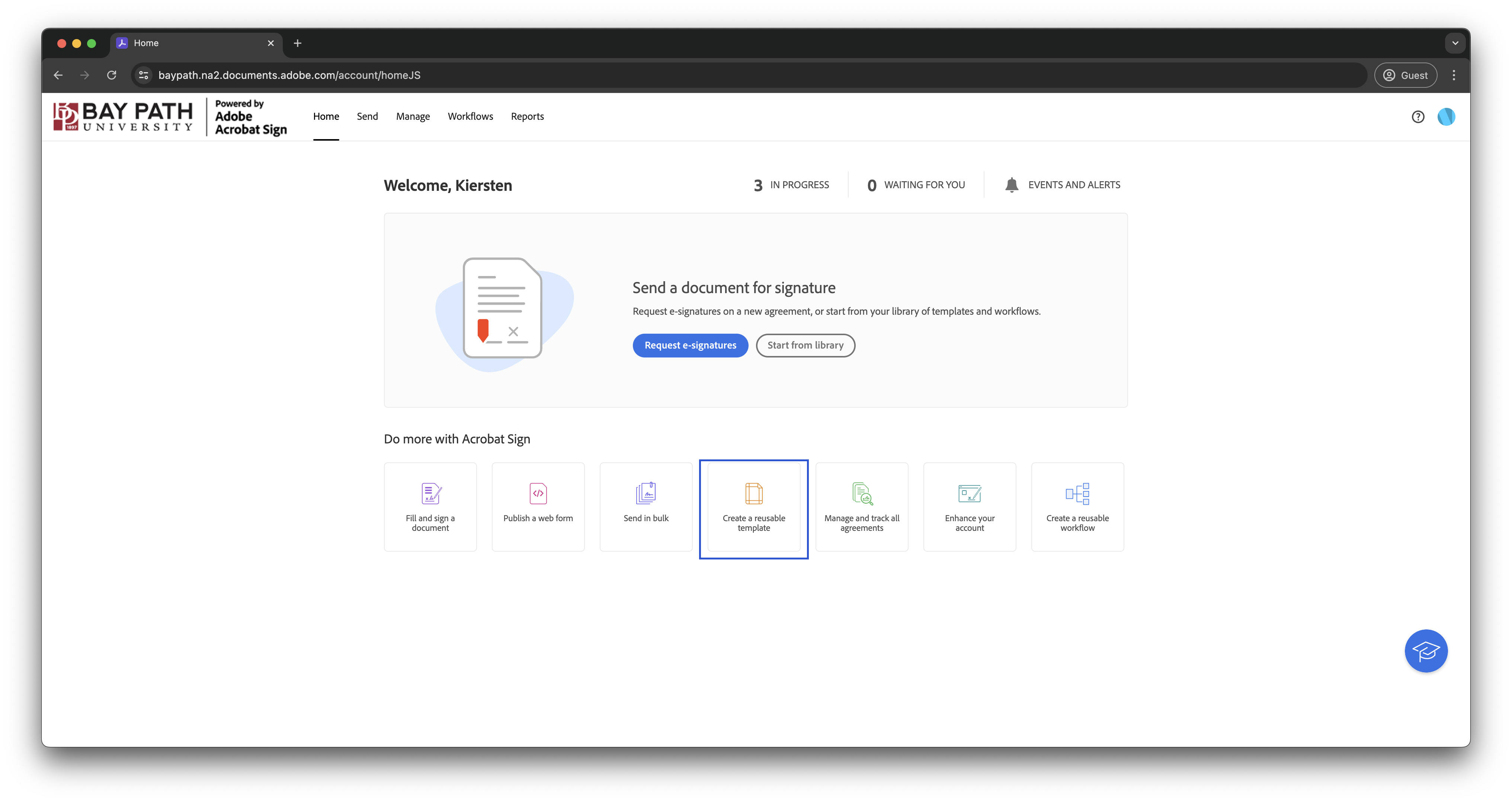 The created sign template is stored in your Adobe Sign account. To see the list of all your templates, click Manage in the top-menu bar, and then click Templates.
