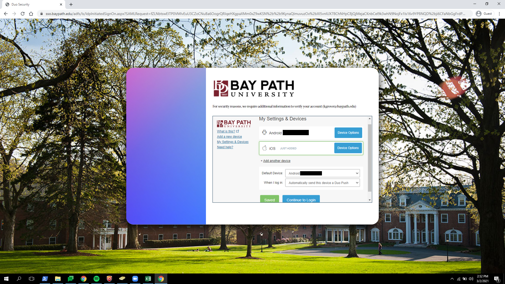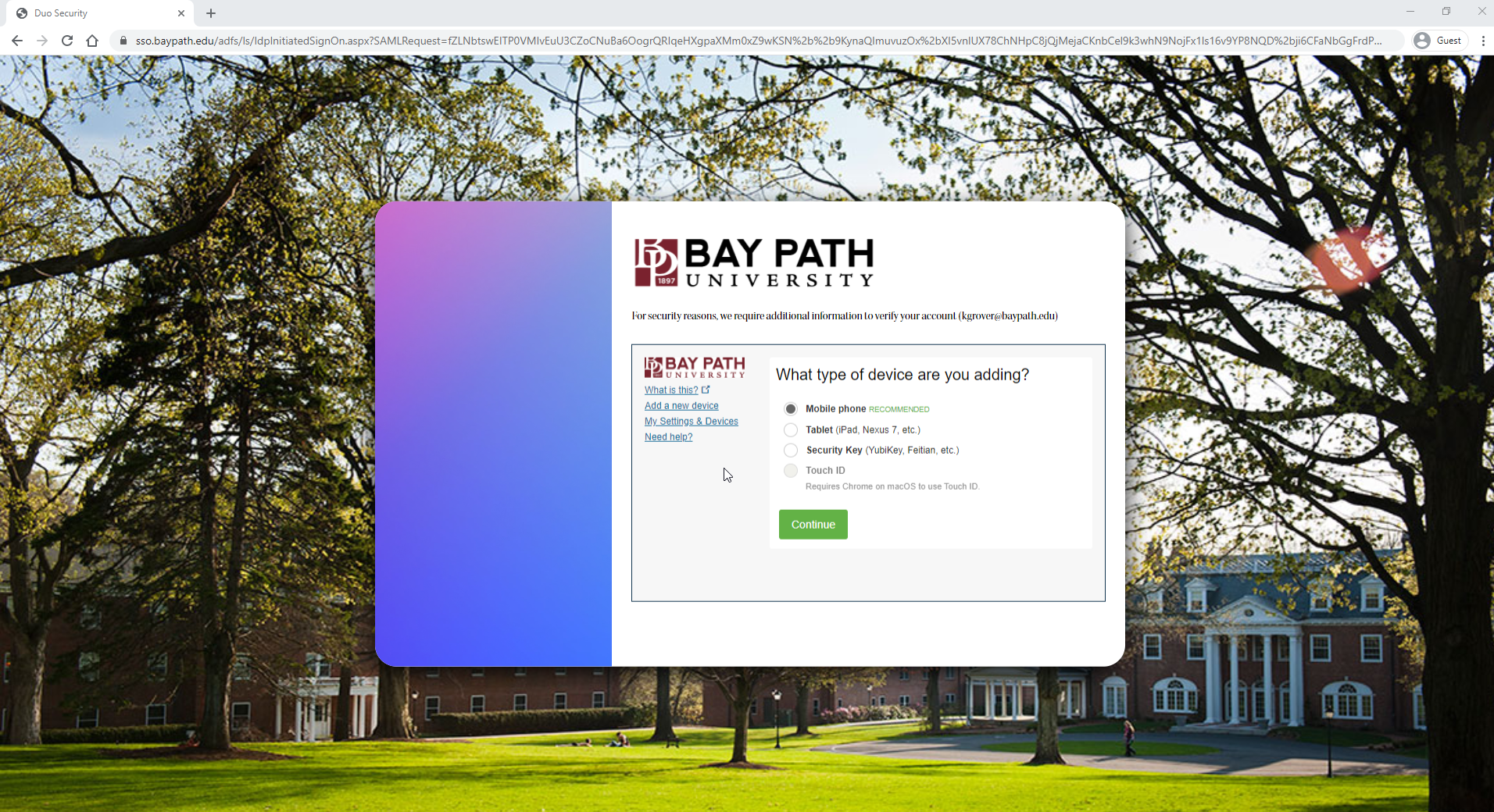 Doing this interrupts the sign-in process and will allow you to manage your Duo account.