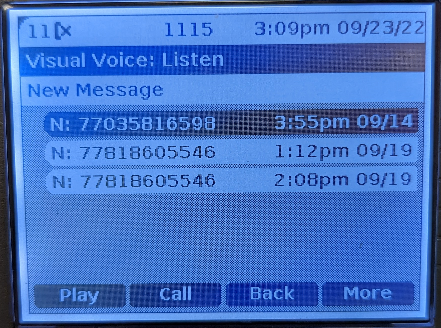 You can use the up/down keys to scroll through the messages. Press Play to play a message.
