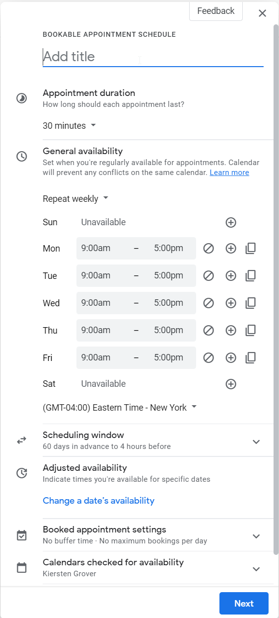 By default, someone can book an appointment with you anywhere from 12 hours to 60 days in advance.