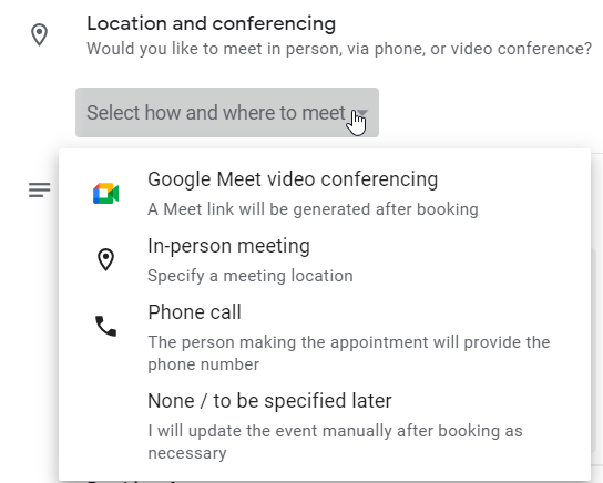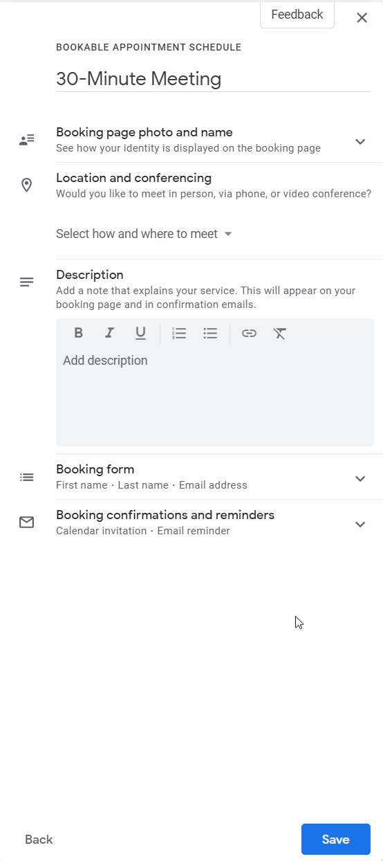 In Google Calendar, you can manage your availability and allow people to schedule meetings with you via a personal booking page (similar to Calendly).