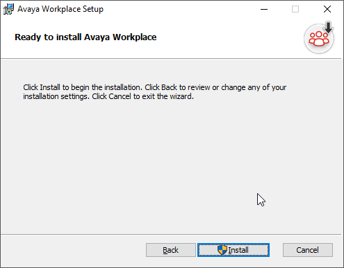 Select Install on the Ready to install Avaya Workplace page.