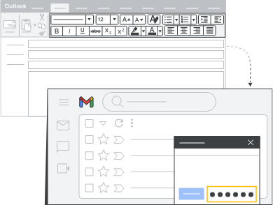 In both Outlook and Gmail, controls are available on the new message window. And you can right-click messages in your inbox to view options. Gmail automatically saves messages you're working on in a label named Drafts.